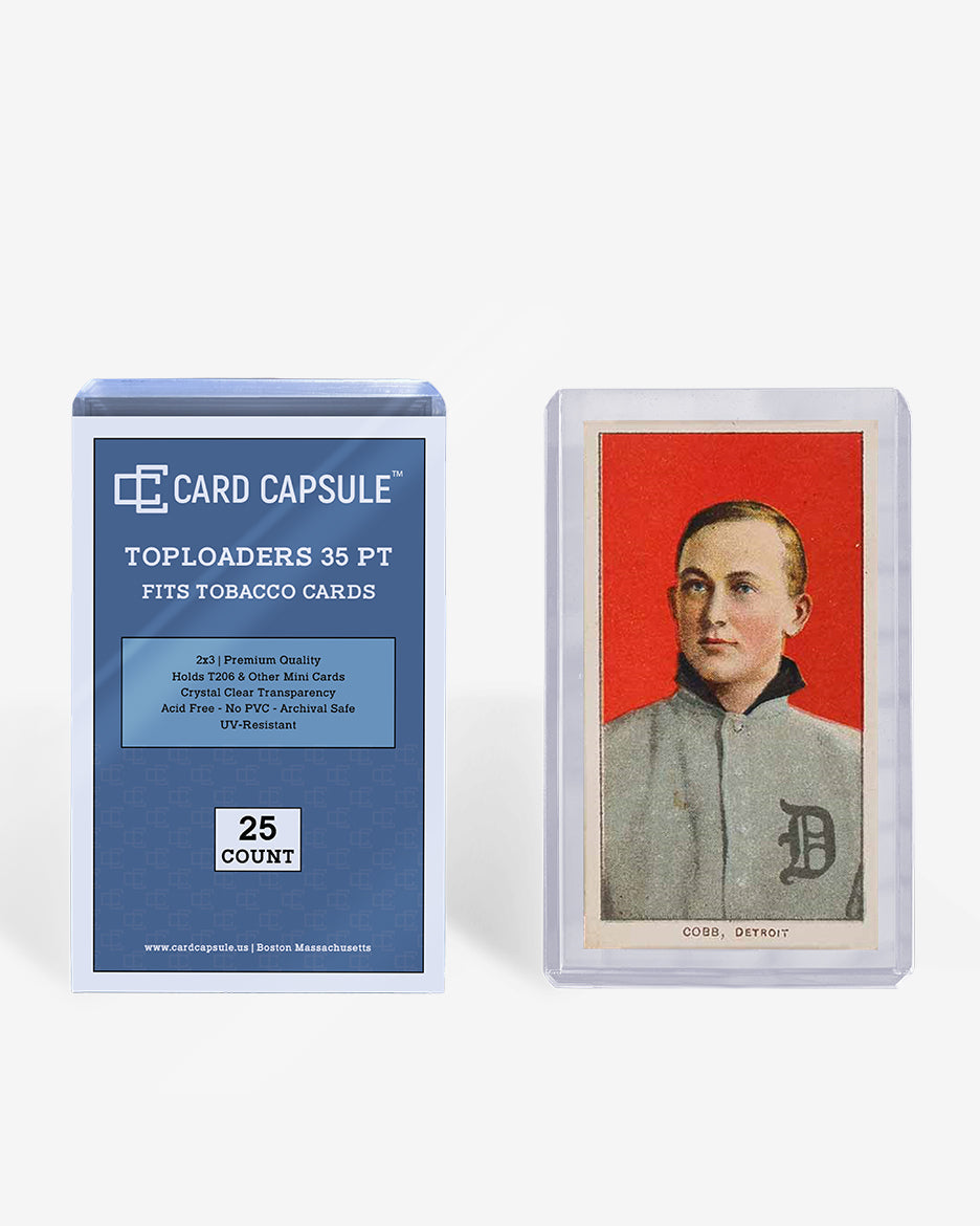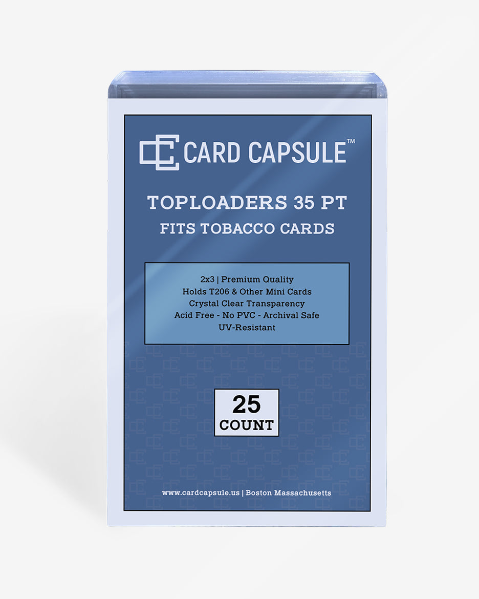 Designed to hold T206 and tobacco size trading cards, CARD CAPSULE toploader Hard Cases are acid-free and archival safe. Made of the highest quality crystal clear plastic, these card holders provide great protection for trading cards.