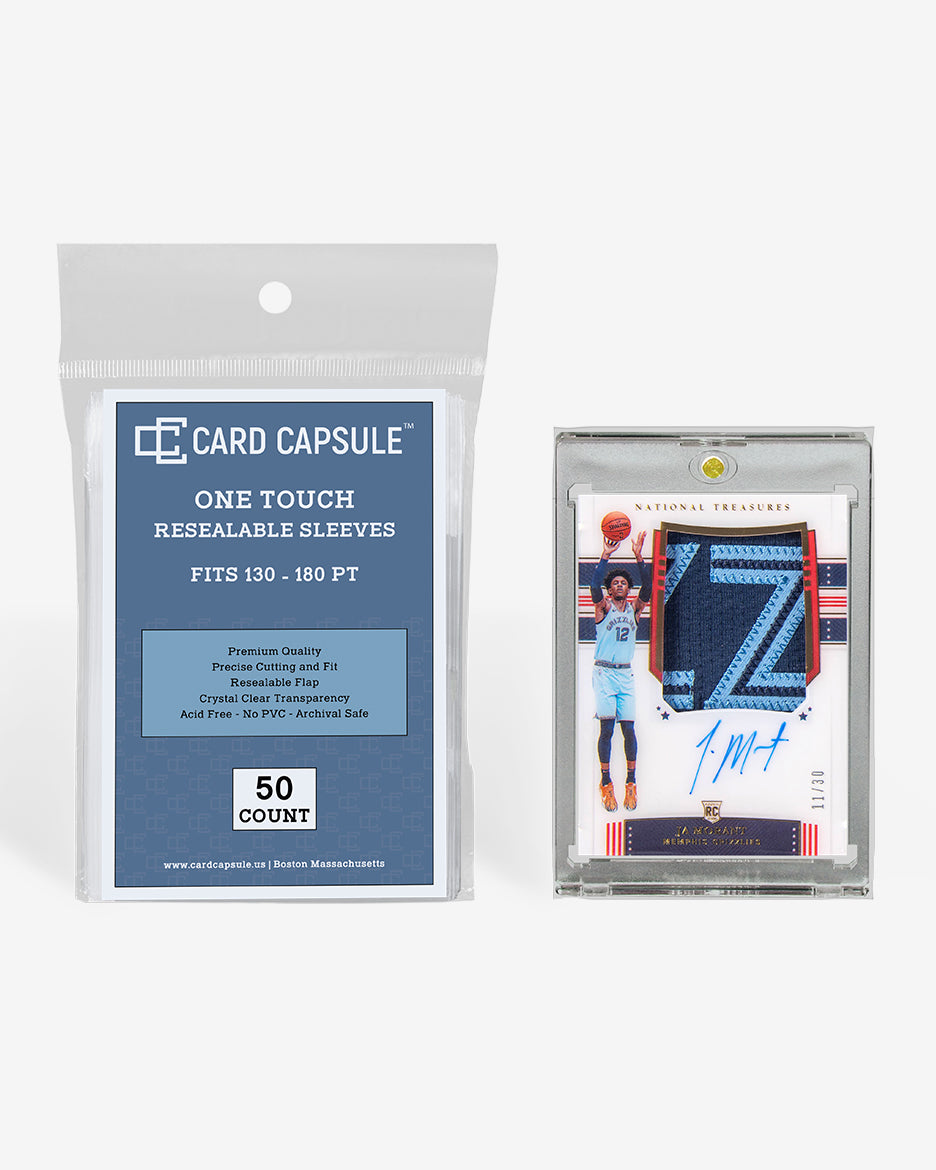 Introducing Card Capsule PREMIUM QUALITY sleeves, meticulously crafted to cater to your One Touch holders, accommodating sizes from 130-180PT with a precision fit and unparalleled clarity. These re-sealable sleeves are acid and PVC-free to provide archival-safe protection for your cards. Moreover, these sleeves provide an additional layer of defense for your mag-holders, shielding them from fingerprints, scratches, dust, and the inevitable wear and tear of regular handling.